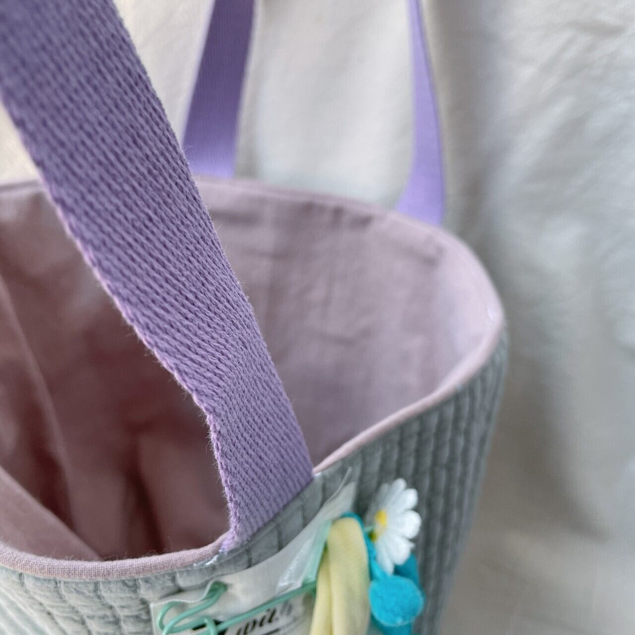 裏地:くすみピンク 持ち手:ラベンダー